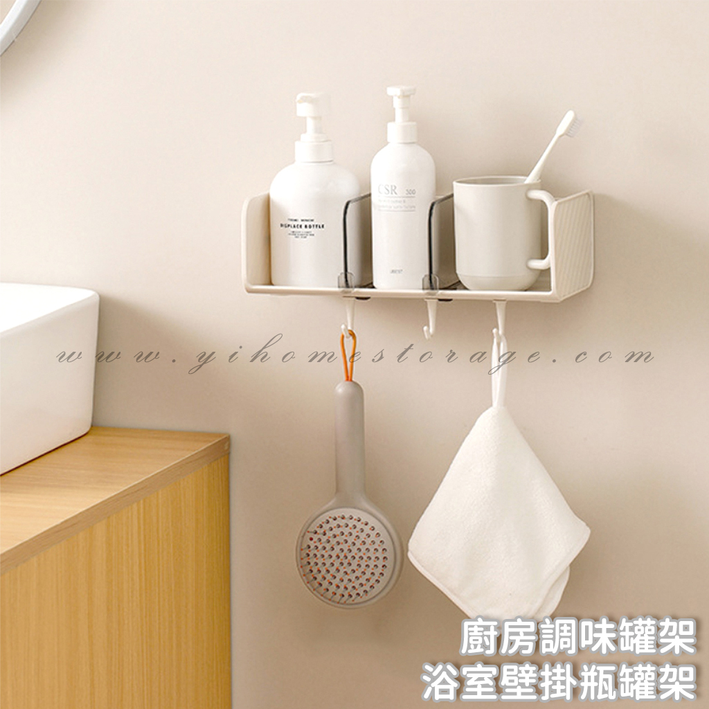 浴室壁掛瓶罐架 廚房調味罐架 附掛勾 六格免釘置物架 隔板可調 壁掛收納架 牆壁架 | 逸家居